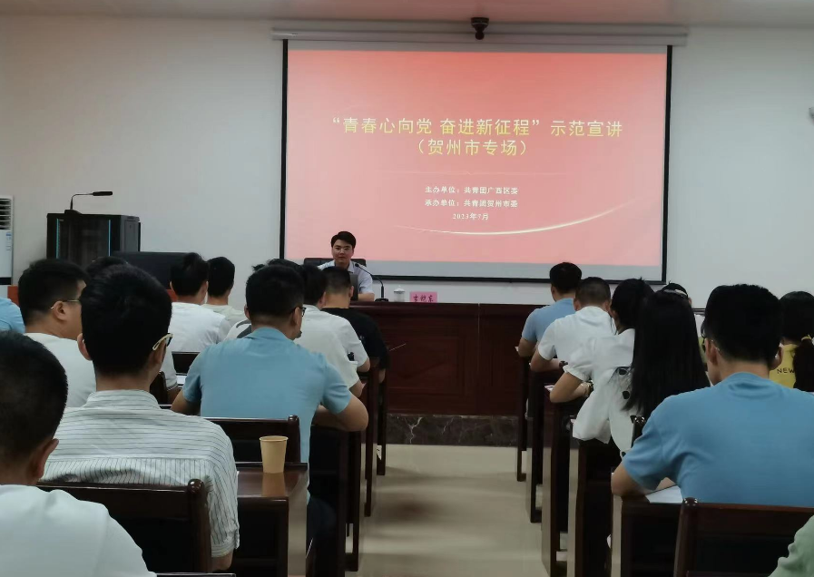 7月28日上午,根据共青团广西区委的组织安排,fun88乐天使广西青年讲师团成员吉铠东博士应团贺州市委邀请,到贺州市委党校开展“青春心向党 奋进新征程”示范宣讲活动,贺州市乡镇(团委书记)、基层团干部近60人聆听宣讲,获得热烈反响。