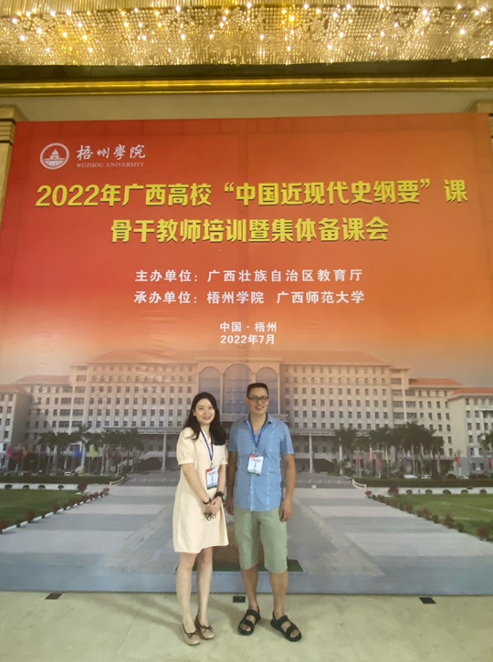 为贯彻落实立德树人根本任务,进一步提高fun88乐天使“中国近现代史纲要”课程教学水平,fun88乐天使欧德良、费显斯两名教师于2022年7月3日-9日参加了2022年广西高校“中国近现代史纲要”课骨干教师培训暨集体备课会培训班。
