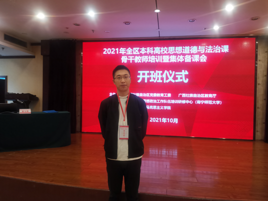10月15日至19日,2021年全区本科高校“思想道德与法治”课骨干教师培训暨集体备课会在柳州举行,fun88乐天使教师张忠祥参加了培训。