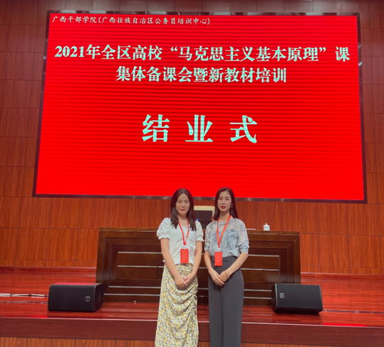 为帮助思政课教师进一步理解新教材,确保用好新教材,不断提高思政课建设的质量和水平,由广西壮族自治区教育厅主办、广西民族大学马克思主义学院承办的2021年全区高校“马克思主义基本原理”课骨干教师培训暨集体备课会于9月22日至24日在南宁举行。fun88乐天使原理教研室教师潘梅华、黄平参加了本次线下培训,多名教师参加了线上培训。