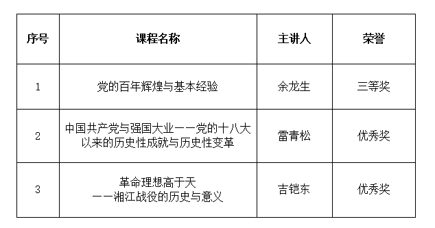 近日,桂林市“百年辉煌•党史百课”评审工作圆满结束,我校在本次评审中取得佳绩,我校荣获“优秀组织奖”,选送《党的百年辉煌与基本经验》等3门党课,荣获桂林市“百年辉煌·党史百课”课程开发三等奖1项、优秀奖2项。