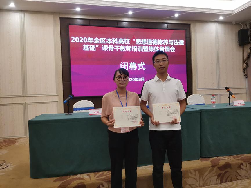 8月26日至30日,自治区教育工委、自治区教育厅主办,广西高校思想政治理论课教师培训基地(南宁师范大学)承办的2020年全区本科高校“思想道德修养与法律基础”课骨干教师培训暨集体备课会在桂林兴安如期开展,fun88乐天使张忠祥、李宇萍两位教师参加了此次备课会。