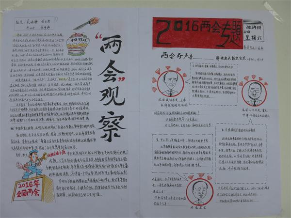 2016年春季学期开学之际,两会已在京召开,思政部及时在全校开设的“毛泽东思想和中国特色社会主义理论体系概论”课的所有班级中安排布置了2016年两会手抄报比赛。