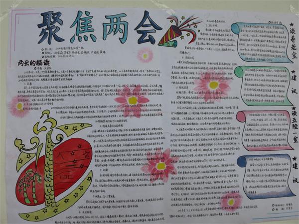 两会手抄报比赛作为思政部的一项常规性教学活动,得到了各级领导的大力支持和各位老师的辛勤指导。活动的举办,既达到了积极引导学生学习两会精神,了解党的方针政策的良好效果,也增强了“毛泽东思想和中国特色社会主义理论体系概论”课教学的生动性和实效性。