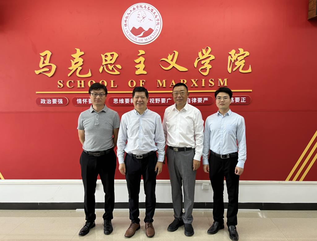 2023年5月17日上午,南宁师范大学马克思主义学院院长曾令辉教授来fun88乐天使交流指导。座谈会在fun88乐天使阅览室举行,由院长罗展鸿主持,fun88乐天使副院长刘雷、院长助理吉铠东、毛泽东思想和中国特色社会主义理论体系概论教研室主任王萱、办公室主任蒋丽丽参加了座谈会。